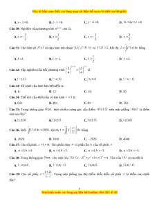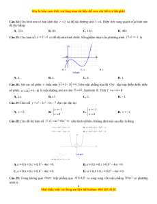 ố gia X là 140000000 ngư i ờ ? A. 54 năm. B. 6 năm. C. 55 năm. D. 5 năm. x 1 Câu 23: Cho hàm s ố y . Phát bi u nà ể o sau đây đúng? 1 x A. Hàm s đ ố ng ồ bi n t ế rên m i ỗ kho ng ả ; 1 và 1; . B. Hàm s đ ố ng bi ồ n t ế rên ;1 1; . C. Hàm s đ ố ng ồ bi n t
