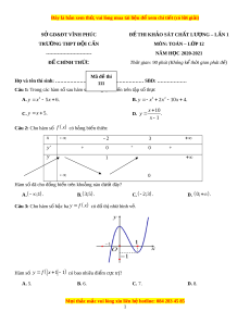SỞ GD&ĐT VĨNH PHÚC Đ Ề THI KH O Ả SÁT CH T Ấ LƯ N Ợ G – L N Ầ 1 TRƯỜNG THPT Đ I Ộ C N Ấ MÔN: TOÁN – L P Ớ 12