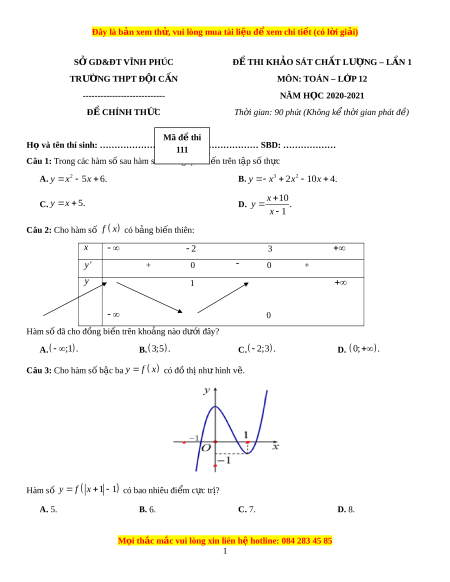 Đề thi thử Toán trường Đội Cấn năm 2021