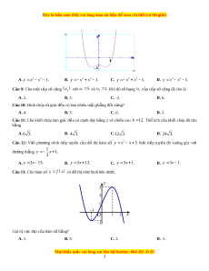 y x x 5 bi t ế ti p ế tuy n ế đó vuông góc v i ớ 1 đư ng ờ thẳng y x 1. 3 A. y 3 x 13. B. y 3 x 13. C. y 3 x 1. D. y 3 x 1. Câu 13: Cho hàm s