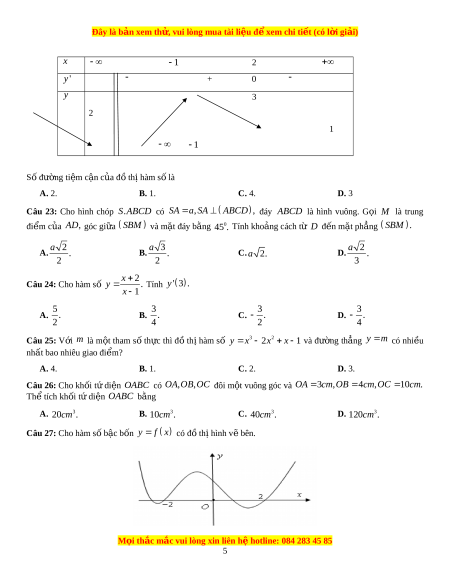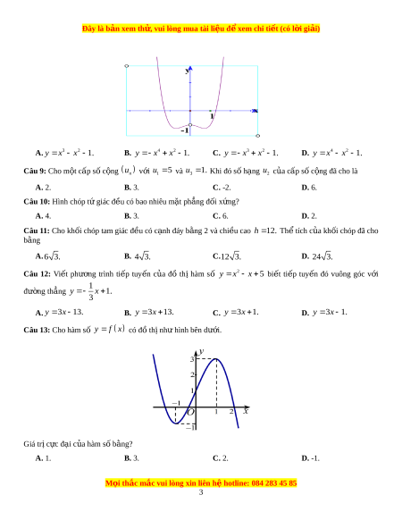 Đây là bản xem th , vu ử i lòng mua tài li u ệ đ xe ể m chi ti t ế (có l i ờ gi i ả ) 2 1 x Câu 14: Đ t ồ hị hàm s ố y