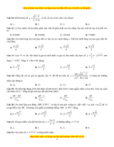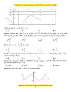 ờ thẳng AM và B 'C bằng a 7 a 2 a 3 a 6 A. d . B. d . C. d . D. d . 7 2 3 6 3x 1 Câu 21: S gi ố ao điểm c a ủ đ t ồ hị hàm s ố y và đư ng ờ thẳng y 3 là x 3 A. 2. B. 1. C. 3. D. 0. Câu 22: Cho hàm s