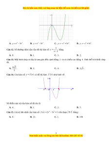 A. 2; . B. ; 1 . C. ; 2 . D. 1; 1 . Câu 10. Hàm s nà ố o sau đây không có c c ự tr ? ị A. 3