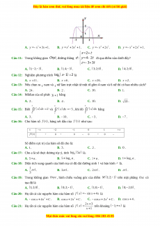 Câu 20: Họ tất cả các nguyên hàm của hàm số là
