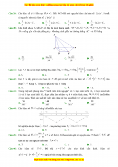 , thiết diện thu được là hình vuông. Diện tích xung quanh hình trụ đã cho bằng A. . B. . C. . D. . Câu 38: Cho hàm số , biết . Khi đó bằng A. . B. . C. . D. .