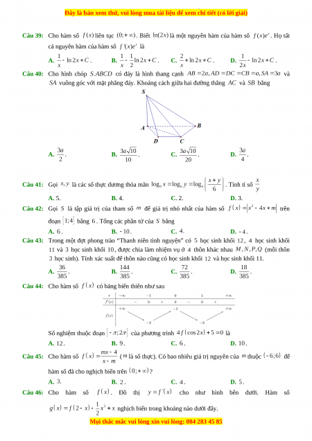 Câu 36: Cho phương trình