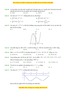 ệ ách dài sao cho các quy n s ể ách Văn phải x p k ế nha ề u? A. 5!.8!. B. 5!.7!. C. 2.5!.7!. D. 12!. Câu 11: Cho hàm s ố 2x f x e . Khẳng đ nh nà ị o sau đây đúng? A. 2 d x f x x e C . B. 2 d 2 x