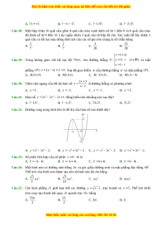 ờ thẳng d và mặt phẳng (P) . A. ( A 3;5;3) . B. ( A 1;3;1) . C. ( A 3;5;3) . D. ( A 1; 2; 3). 2x 3 Câu 20: Ti m ệ cận ngang c a ủ đ t ồ hị hàm s ố y là đư ng t ờ hẳng có phư ng t ơ rình: x 1 A. y 1 . B. y 2 . C. y 1. D. y 2 . Câu 21: Hàm s ố 3 2 y 2