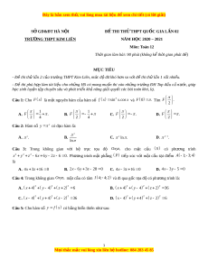 Đây là bản xem th , vu ử i lòng mua tài li u ệ đ xe ể m chi ti t ế (có l i ờ gi i ả ) SỞ GD&ĐT HÀ N I Ộ Đ Ề THI TH Ử THPT QU C Ố GIA L N Ầ 02 TRƯ N Ờ G THPT KIM LIÊN NĂM H C Ọ 2020 – 2021 Môn: Toán 12 Th i
