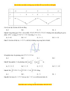A B,C có dạng ax by cz 2 0 . Tính t ng ổ S a b . c A. S 1 0 B. S 2 C. S 2 D. S 10 Câu 7: Cho hàm s b