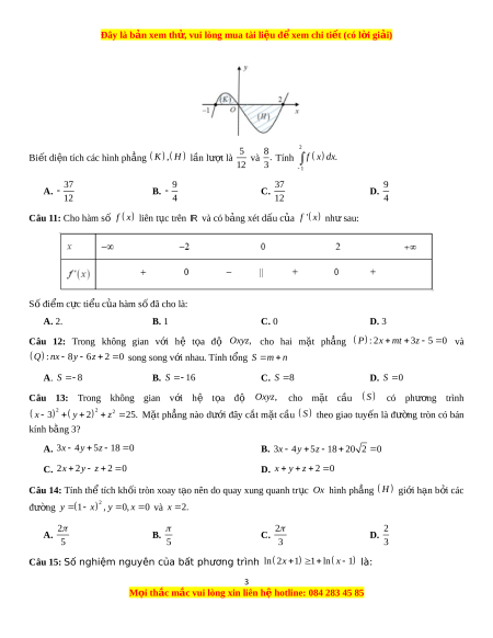 Đây là bản xem th , vu ử i lòng mua tài li u ệ đ xe ể m chi ti t ế (có l i ờ gi i ả ) Giá tr c ị c ự đ i ạ c a ủ hàm s đã ố cho b ng ằ A. 0 B. 1 C. 3 D. 4