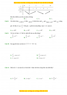 Câu 10: Họ nguyên hàm của hàm số là: A. B. C. D.
