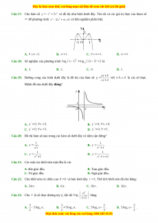 Câu 14: Đạo hàm của hàm số là A. B. C. D. Câu 15: Cho hàm số . Đồ thị của hàm số