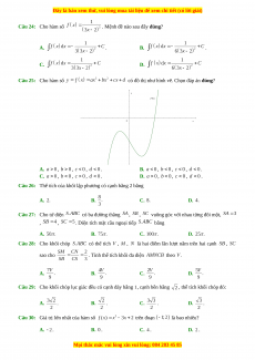 . Tính góc giữa hai mặt phẳng và A. . B. . C. . D. . Câu 9: Với các số thực