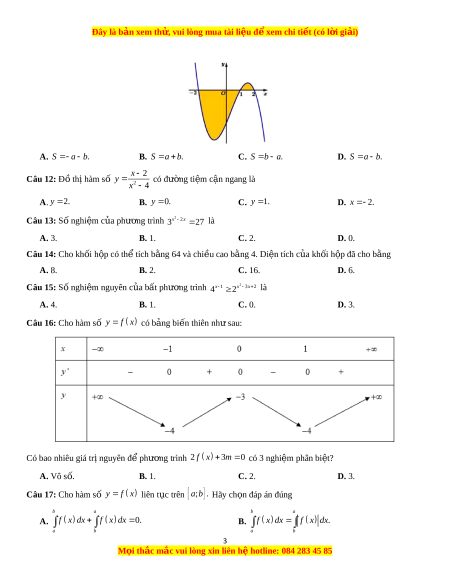 rình 2 f x 3m 0 có 3 nghiệm phân bi t ệ ? A. Vô s . ố B. 1. C. 2. D. 3. Câu 17: Cho hàm s