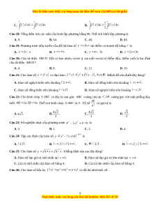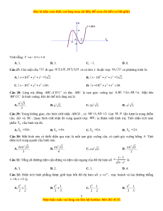 D. f x dx f x . dx 2 a b a b Câu 18: T ng di ổ ện tích các mặt c a ủ hình l p ph ậ ư ng b ơ ng 96. ằ Th t ể ích kh i ố l p ph ậ ư ng ơ là A. 9. B. 64. C. 48. D. 84. Câu 19: Phư ng t ơ rình ti p t ế uy n c ế a ủ đồ th hà ị m s ố y .