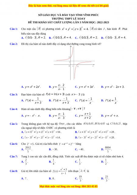 Đề thi thử Toán trường Lê Xoay lần 1 năm 2023