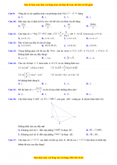 ĐỀ THI KHẢO SÁT CHẤT LƯỢNG LẦN 3 NĂM HỌC: 2022-2023 Câu 1: Cho mặt cầu có phương trình . có tâm , bán kính . Phát biểu nào sau đây đúng A. . B. . C. . D. . Câu 2:
