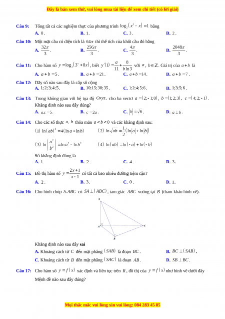 Đây là bản xem thử, vui lòng mua tài liệu để xem chi tiết (có lời giải)