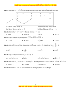 ế rên khoảng nào sau đây? A. 0; . B. . C. 2;0 . D. ; 2 . Câu 2: Tìm tất c c ả ác giá trị th c ự c a ủ tham s