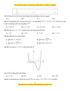 D. R l R . Câu 7: Biết x f x dx e sin x C. M nh đ ệ ề nào sau đây đúng? A. x f x e sin . x B. x f x e cos . x C. x f x e cos . x D. x f x e sin . x Câu 8: Hàm s nà ố o sau đây có đ t ồ hị nh hì ư nh v bê ẽ n dư i ớ ? x x x x 1 1 A. y 2 . B. y 3 . C. y . D. y . 2 3 Câu 9: Cho hàm s