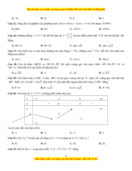 Đây là bản xem th , vu ử i lòng mua tài li u ệ đ xe ể m chi ti t ế (có l i ờ gi i ả ) A. 24. B. 22. C. 6. D. 4 Câu 25: T ng t ổ ất cả nghi m ệ c a ủ phư ng t ơ