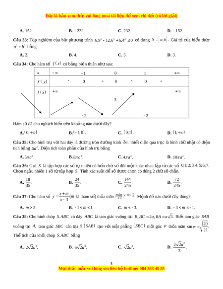 Đây là bản xem th , vu ử i lòng mua tài li u ệ đ xe ể m chi ti t ế (có l i ờ gi i ả ) Câu 18: Cho hàm s