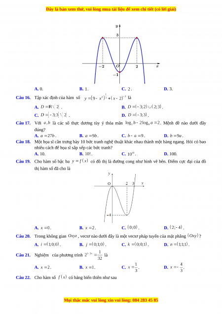 Câu 16. Tập xác định của hàm số là A. . B. . C. . D. . Câu 17. Với