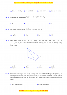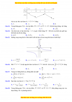 Câu 21. Nghiệm của phương trình là A. . B. . C. . D. . Câu 22. Cho hàm số