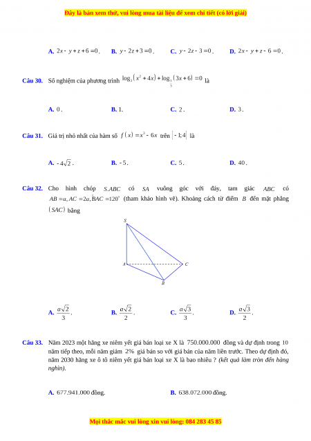 Câu 33. Năm 2023 một hãng xe niêm yết giá bán loại xe X là đồng và dự định trong