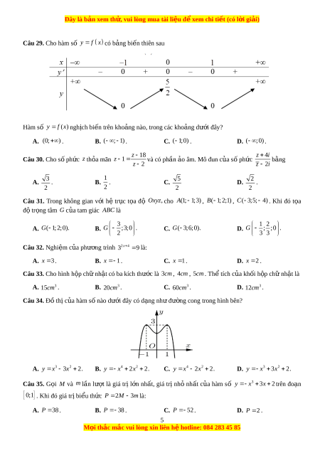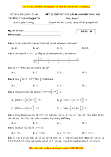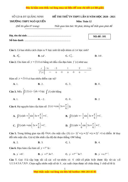 Đây là bản xem th , vu ử i lòng mua tài li u ệ đ xe ể m chi ti t ế (có l i ờ gi i ả ) S G Ở D & ĐT QU N Ả G NINH Đ Ề THI TH Ử TN THPT L N Ầ II NĂM H C Ọ 2020 - 2021 TRƯ N Ờ G THPT NGÔ QUY N Ề Môn: Toán 12 (Đề thi g m ồ 07 trang) Th i