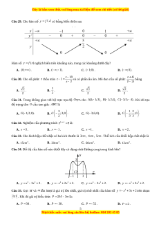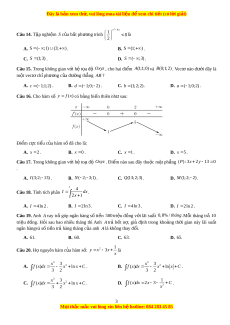 ủ anh A là không thay đ i ổ . A. 61. B. 60. C. 63. D. 65. 1 Câu 20. H nguyê ọ n hàm c a ủ hàm s : ố 2