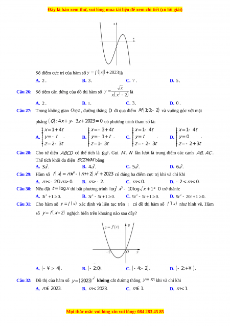 Câu 26: Số tiệm cận đứng của đồ thị hàm số là A. . B. . C. . D. .