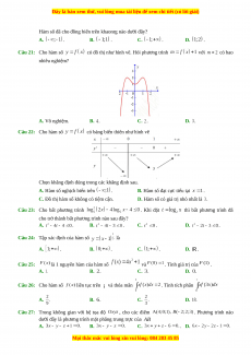 Câu 24: Tập xác định của hàm số là A. . B. . C. . D. . Câu 25: