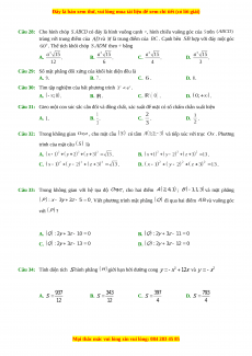 Câu 19: Phương trình mặt phẳng đi qua , song song với là A. . B. . C. . D. . Câu 20: Cho
