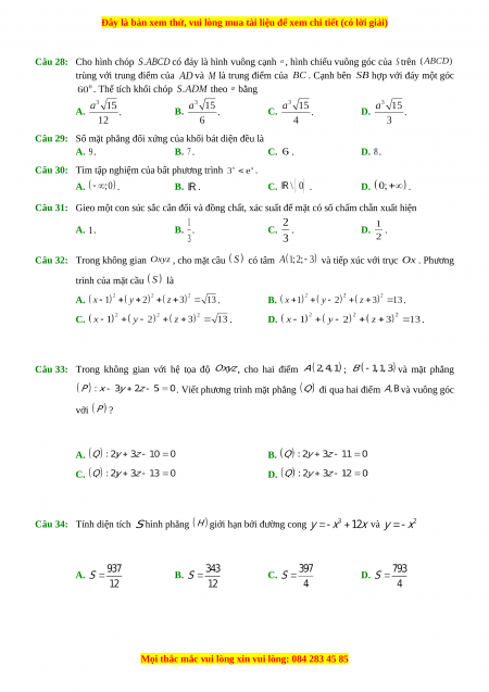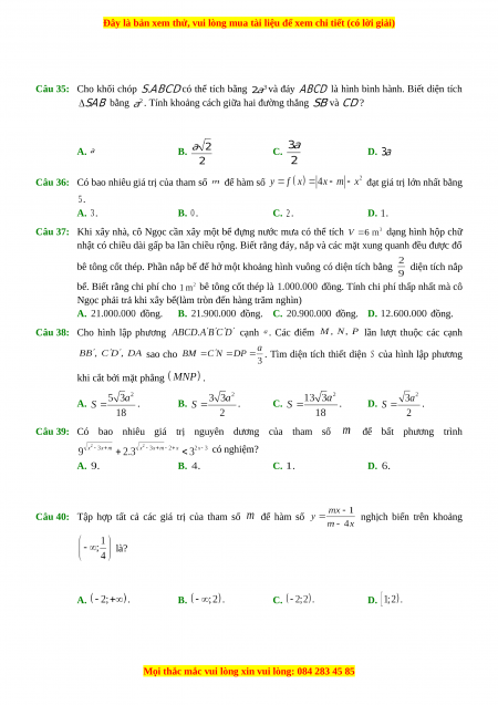 Đây là bản xem thử, vui lòng mua tài liệu để xem chi tiết (có lời giải)