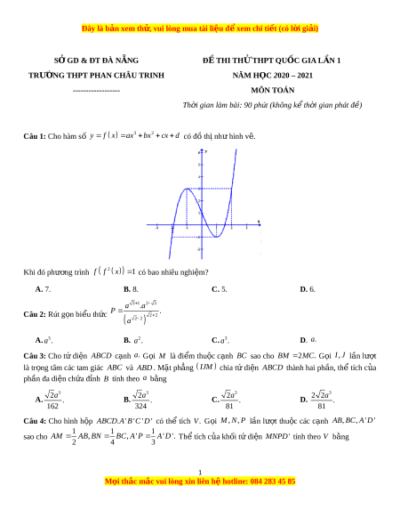 Đề thi thử Toán trường Phan Châu Trinh năm 2021