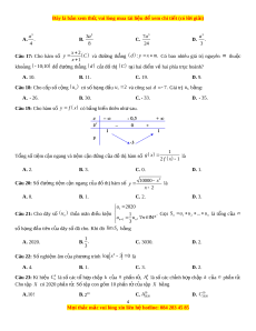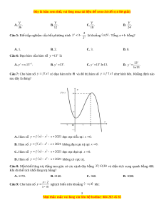 là khoảng a;b . T ng ổ a b bằng? 2x A. 1. B. 2. C. 3. D. 0. Câu 6: Đạo hàm c a ủ hàm s ố 13x y là 13x A. x 1 y ' . x 13 . B. ' 13 .x y C. ' 13 .x y ln13. D. y ' . ln13