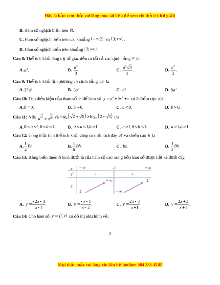 Đây là bản xem th , vu ử i lòng mua tài li u ệ đ xe ể m chi ti t ế (có l i ờ gi i ả ) B. Hàm s ngh ố c ị h biến trên . C. Hàm s ngh ố c ị h bi n t