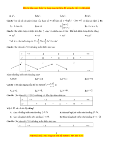 ị h biến trên khoảng (0;2) . C. Hàm s ngh ố c ị h bi n t ế rên khoảng ( ; 0) . D. Hàm s ngh ố c ị h bi n t ế rên khoảng ( ; 2) Câu 11: Cho hàm s