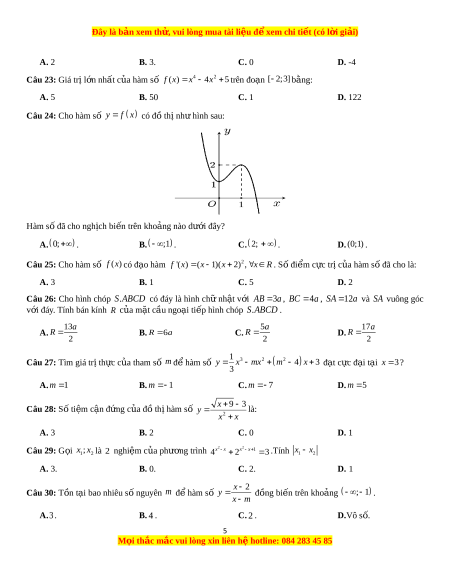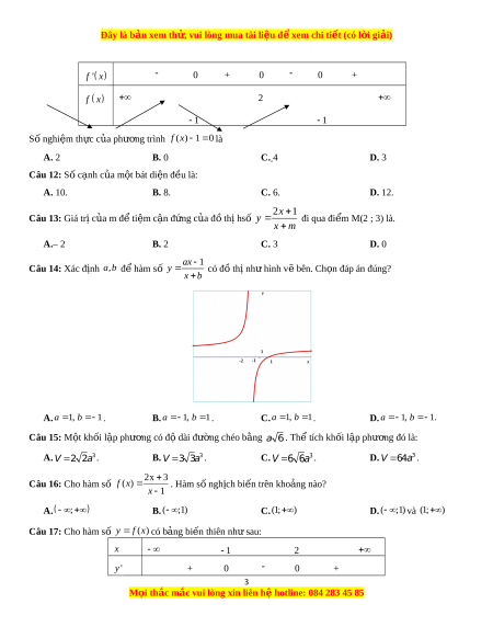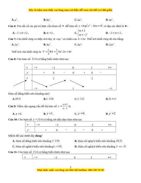 Đây là bản xem th , vu ử i lòng mua tài li u ệ đ xe ể m chi ti t ế (có l i ờ gi i ả ) A. 2 a . B. 3 8a . C. 3 6a . D. 2 4a . Câu 6: Tìm tất c c ả ác giá trị th c ự c a ủ tham s ố m để hàm s ố y 2