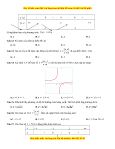 rình f (x) 1 0 là A. 2 B. 0 C. 4 D. 3 Câu 12: S c ố ạnh c a ủ m t ộ bát di n đ ệ u l ề à: A. 10. B. 8. C. 6. D. 12. 2x 1 Câu 13: Giá trị c a ủ m đ t ể i m ệ c n đ ậ ng c ứ a ủ đ t ồ hị hsố y đi qua điểm M(2 ; 3) là. x m A.– 2 B. 2 C. 3 D. 0 ax 1 Câu 14: Xác đ nh ị