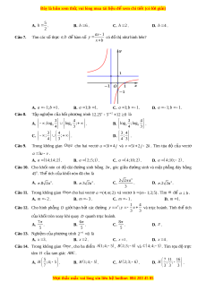 ố tròn xoay khi quay D quanh tr c ụ hoành. 7 6 8 A. . B. . C. . D. . 5 5 5 Câu 13. Nghi m ệ c a ủ phư ng ơ trình x 1 2 8 là A. x 3 . B. x 2 . C. x 1 . D. x 4 .