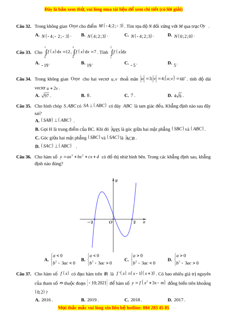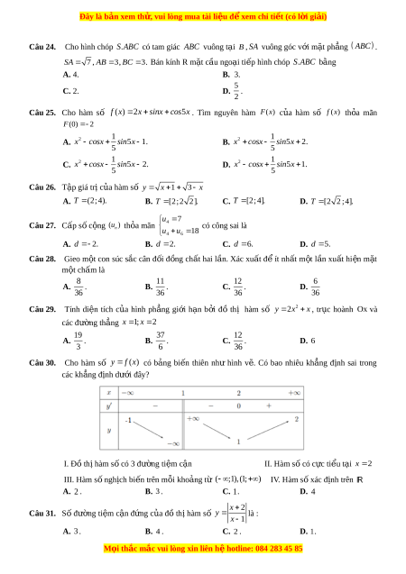 Đây là bản xem th , vu ử i lòng mua tài li u ệ đ xe ể m chi ti t ế (có l i ờ gi i ả ) 5 A. h . B. h 6 . C. h 2 . D. h 4 . 2 ax 1 Câu 7. Tìm các s t ố h c