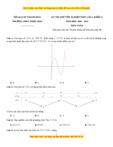 SỞ GD & ĐT THANH HÓA KỲ THI TH Ử T T Ố NGHI P Ệ THPT L N Ầ 1 KH I Ố 12 TRƯỜNG THPT THI U Ệ HÓA NĂM H C