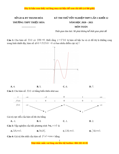 Đề thi thử Toán trường Thiệu Hóa năm 2021