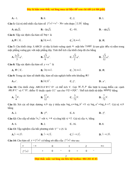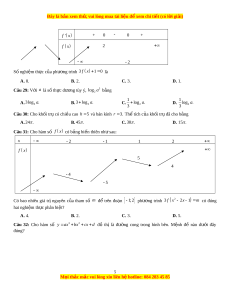 ố f (x) có bảng biến thiên nh s ư au: Giá tr c ị c ự ti u ể c a ủ hàm s đã ố cho b ng ằ A. -1. B. 0. C. 1. D. 2. Câu 3: Tập nghi m ệ c a ủ bất phư ng t ơ rình log x 2 5 là A. 25; . B. 0;25 . C. 25; . D. 32; .