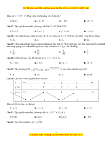 ố g(x) f ( f (x) x) có bao nhiêu điểm c c ự trị ? A. 4. B. 5. C. 6. D. 7. Câu 2: Cho hàm s