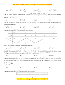 ố f x có bảng biến thiên nh s ư au: x 1 0 1 f ' x 0 + 0 0 + f x 2 1 1 Hàm s đã ố cho ngh c ị h bi n t ế rên kho ng nà ả o dư i ớ đây? A.1; . B. ; 1 . C. ; 0 . D. 1; 1 . Câu 26: Cho phư ng ơ trình 2