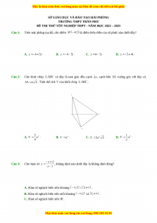 ĐỀ THI THỬ TỐT NGHIỆP THPT - NĂM HỌC 2022 – 2023 Câu 1: